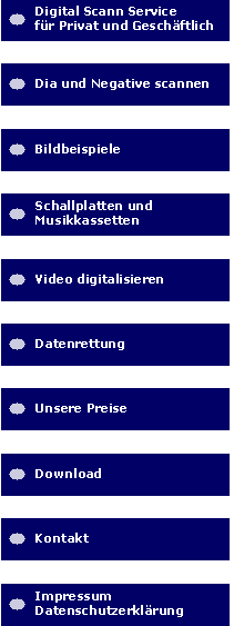 für Privat und Geschäftlich | Dia und Negative scannen | Bildbeispiele | Schallplatten und Musikkassetten digitalisieren | Video digitalisieren | Datenrettung  | Unsere Preise | Download | Kontakt | Impressum